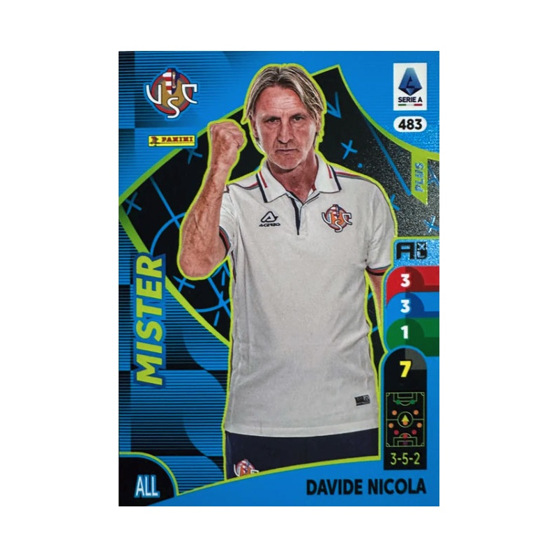 Trading Card de Davide Nicola del equipo Cremonese de la serie Mister con el número 483 de la colección oficial Panini Adrenalyn XL Calciatori 2025-26.
