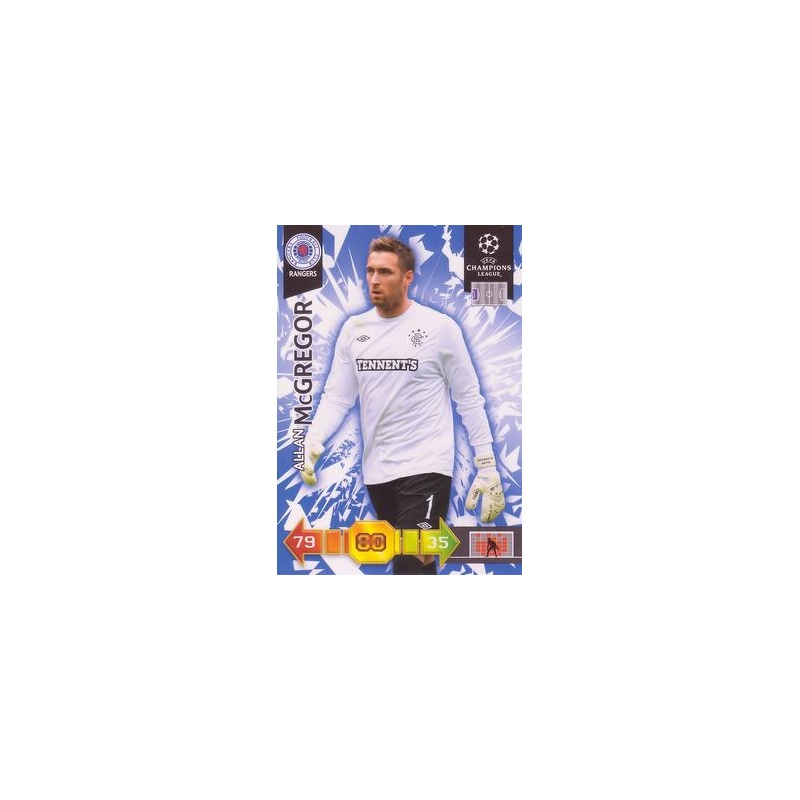 Trading Card de Allan McGregor del equipo del Glasgow Rangers con el número 220 de la colección oficial Adrenalyn XL Uefa Champions League 2010-11 de Panini.