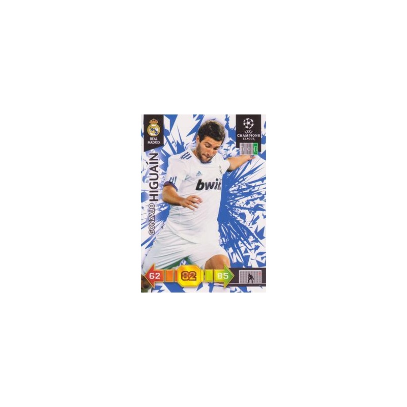 Trading Card de Gonzalo Higuain del equipo del Real Madrid con el número 243 de la colección oficial Adrenalyn XL Uefa Champions League 2010-11 de Panini.