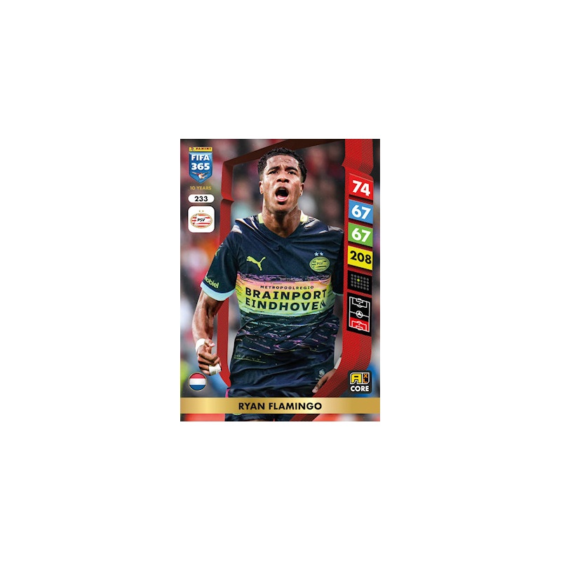 Trading Card de Ryan Flamingo del equipo del PSV Eindhoven con el número 233 de la serie básica de la colección oficial Panini Adrenalyn XL Fifa 365 2025.