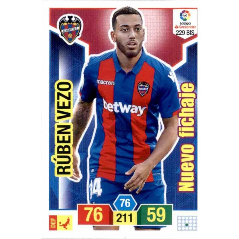 Trading Card número 229 Bis de la actualización Adrenalyn Plus de Rúben Vezo del equipo del Levante de la serie Nuevo fichaje / Actualización de Panini Adrenalyn XL Liga Santander 2018-19