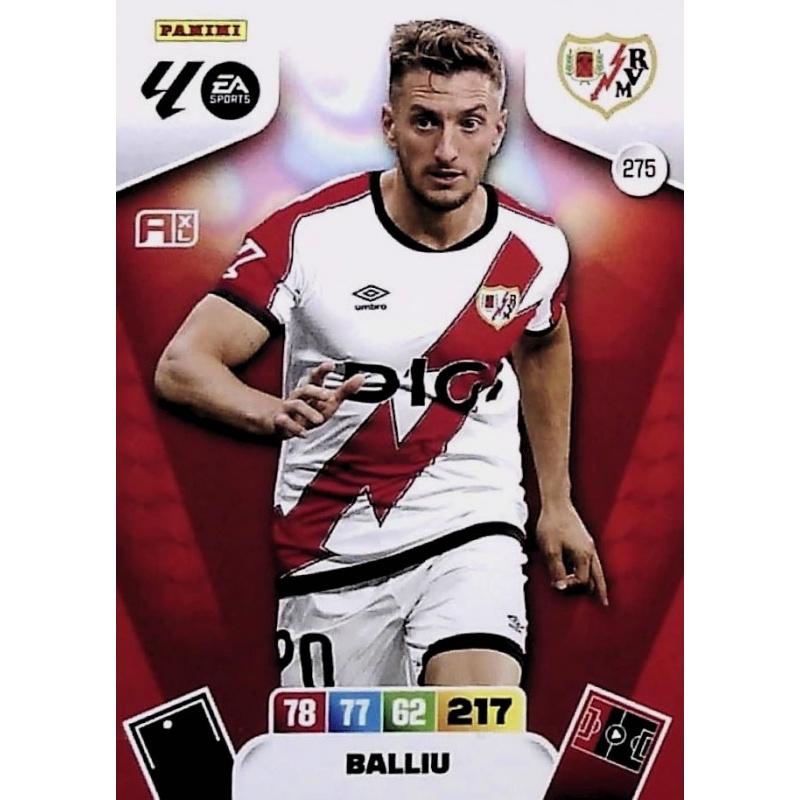 Trading Card del Balliu del equipo Rayo Vallecano de la serie básica con el número 275 de la colección oficial Panini Adrenalyn XL Liga 2025-26.