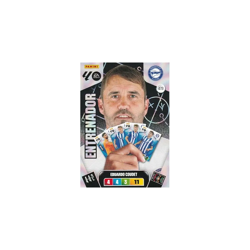 Trading Card del Eduardo Coudet del equipo Alavés de la serie Entrenador con el número 479 de la colección oficial Panini Adrenalyn XL Liga 2025-26.