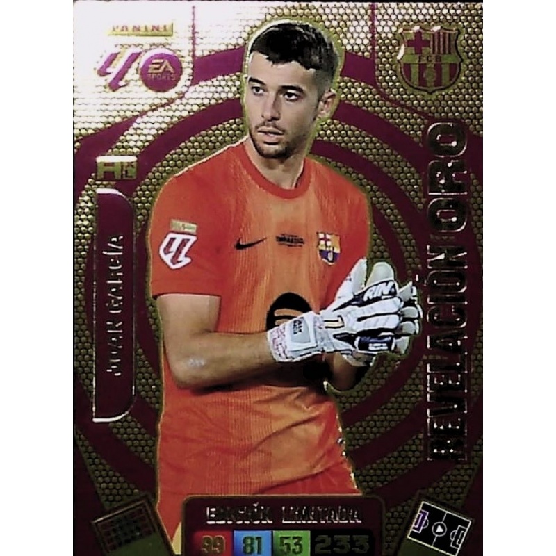 Trading Card del Joan García del equipo Barcelona de la serie Revelación Oro de la colección oficial Panini Adrenalyn XL Liga 2025-26.