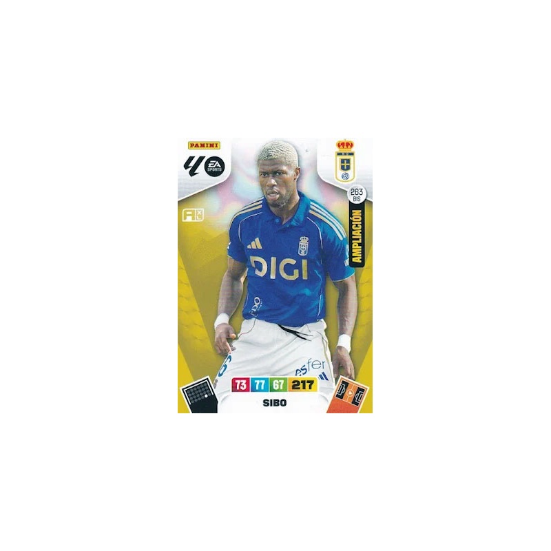 Trading Card del Sibo del equipo Oviedo de la serie Ampliación con el número 263 Bis de la colección oficial Panini Adrenalyn XL Liga 2025-26.