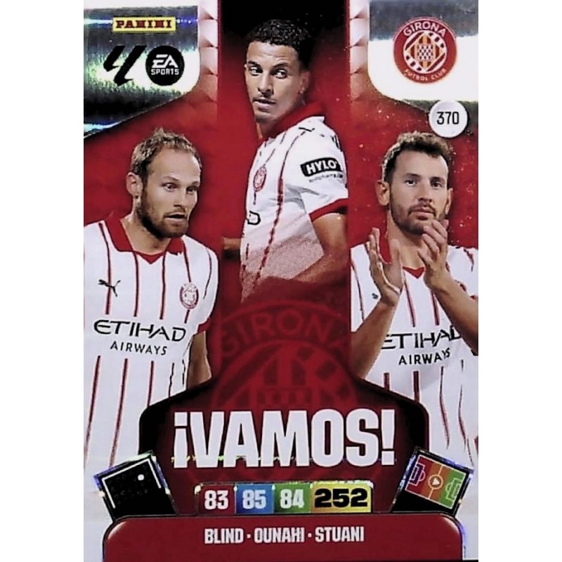 Trading Card del equipo Girona de la serie |Vamos! con el número 370 de la colección oficial Panini Adrenalyn XL Liga 2025-26.