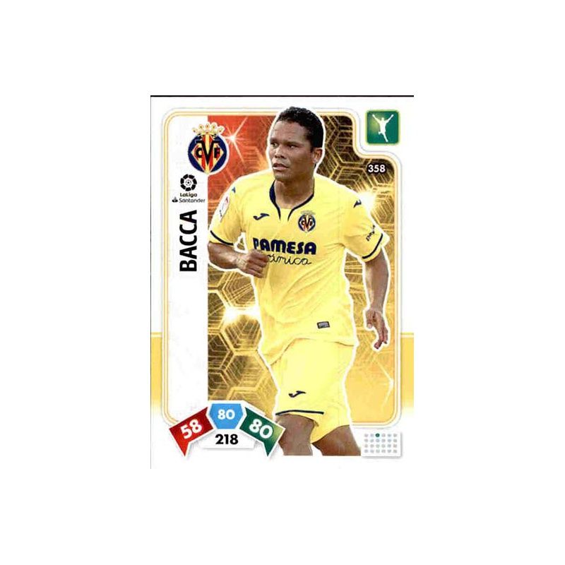 Trading Card número 358 de Carlos Bacca del equipo del Villarreal que corresponde a la colección oficial Panini Adrenalyn XL Liga Santander 2019-20.