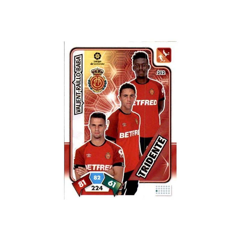 Trading Card número 252 de Tridente del equipo del Mallorca que corresponde a la colección oficial Panini Adrenalyn XL Liga Santander 2019-20.