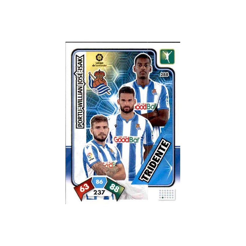 Trading Card número 288 de Tridente del equipo del Real Sociedad que corresponde a la colección oficial Panini Adrenalyn XL Liga Santander 2019-20.