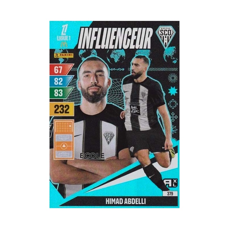 Trading Card de Himad Abdelli del equipo de Angers SCO con el número 379 de la serie Influenceur de la colección oficial Panini Adrenalyn XL Ligue 1 McDonald's 2024-25.