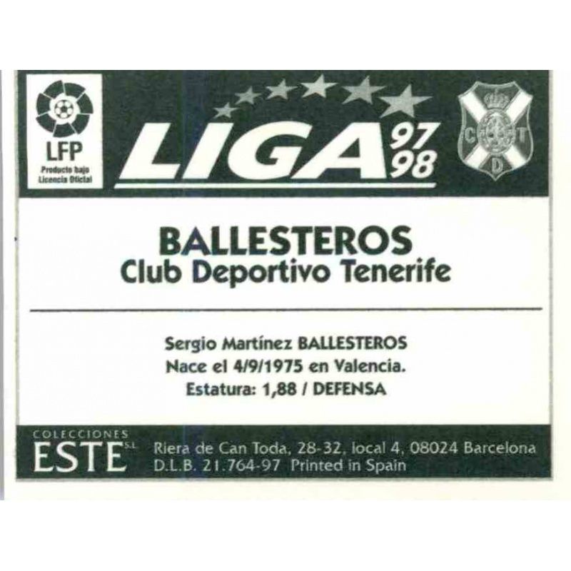 Listado Completo Tenerife Ediciones Este 1997-98 362. Escudo Tenerife | 371. Alexis Suárez (Tenerife) | 381. Kodro (Tenerife) |