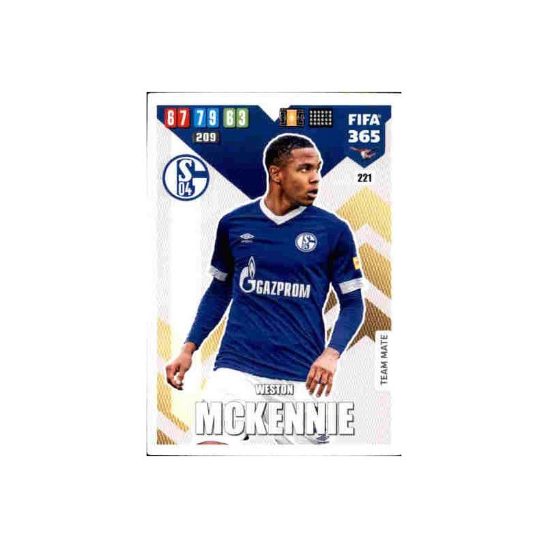 Trading Card de Weston McKennie del equipo del FC Schalke 04 con el número 221 de la serie Team Mate de la colección Panini Fifa 365 Adrenalyn XL 2020