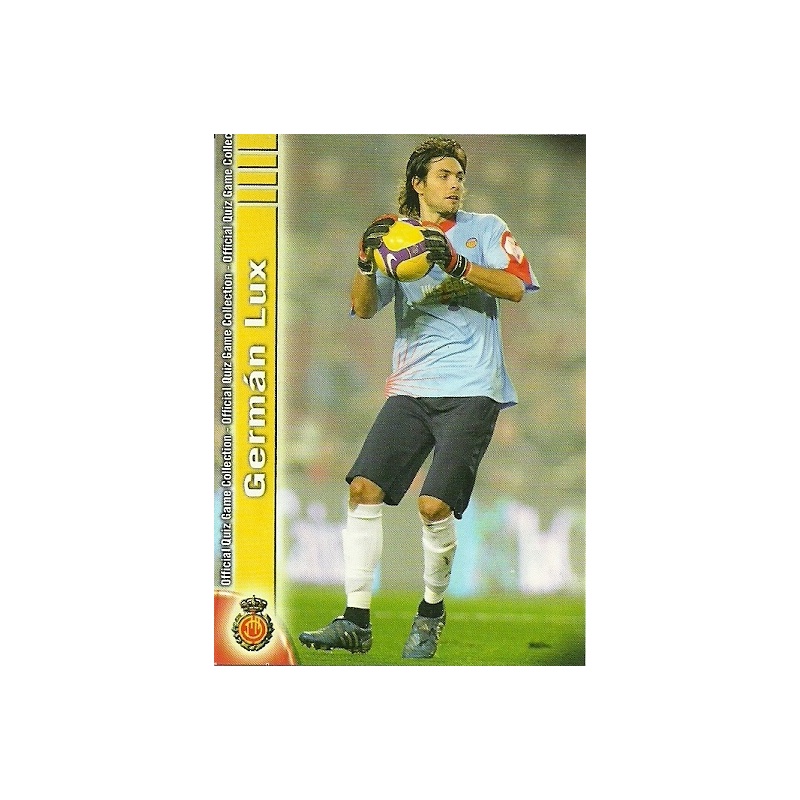 Trading Card de Germán Lux Error del equipo del Mallorca de la serie Básica con el número 221 de la colección Las Fichas de la Liga 2009-2010 Official Quiz Game Collection de Mundicromo. Error: Banda del nombre sin sombreado