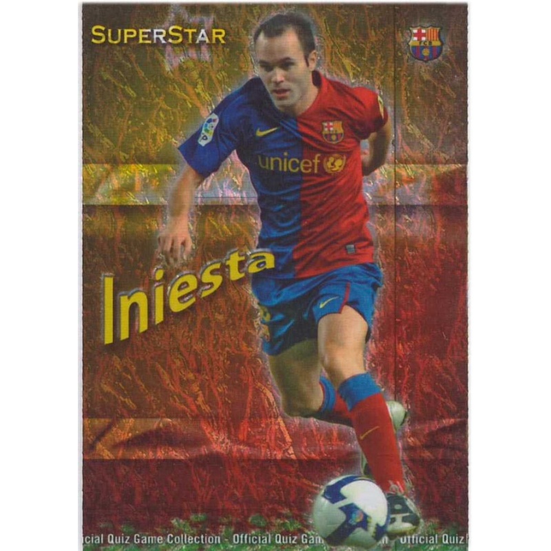 Trading Card de Iniesta del equipo del Barcelona de la serie Superstar Jaspeado con el número 25 de la colección Las Fichas de la Liga 2009-2010 Official Quiz Game Collection de Mundicromo.