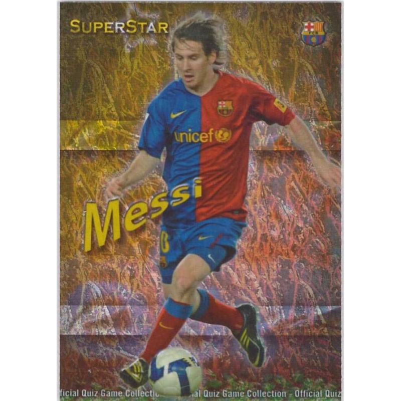 Trading Card de Messi del equipo del Barcelona de la serie Superstar Jaspeado con el número 27 de la colección Las Fichas de la Liga 2009-2010 Official Quiz Game Collection de Mundicromo.