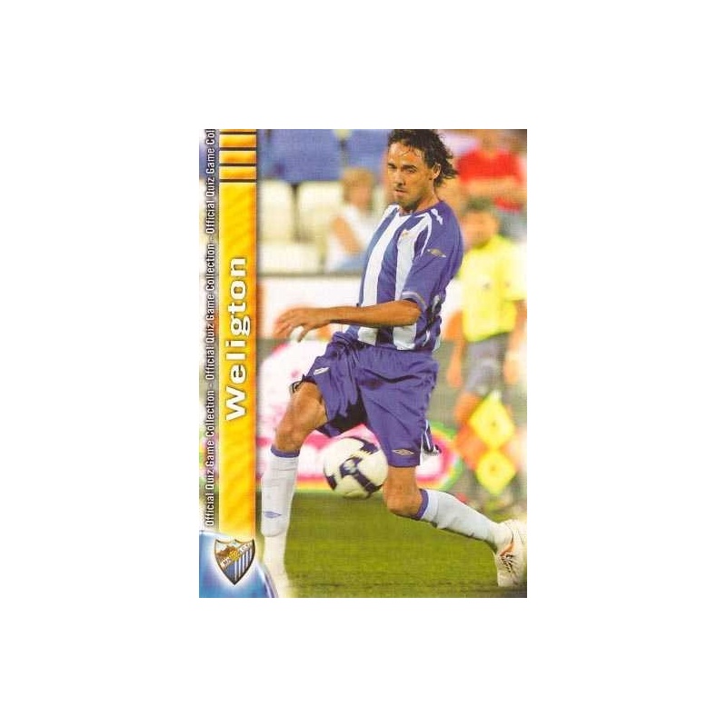Trading Card de Weligton Error del equipo del Málaga de la serie Básica con el número 195 de la colección Las Fichas de la Liga 2009-2010 Official Quiz Game Collection de Mundicromo. Error en pregunta Welington