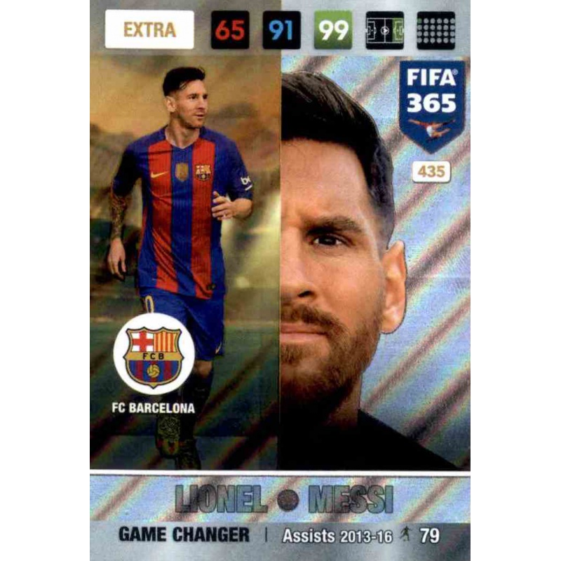 Trading Card de Messi del equipo del Barcelona de la serie Game Changer de la edición Nordic Edition con el número 435 de la colección Adrenalyn XL Fifa 365 2016/17 de Panini.