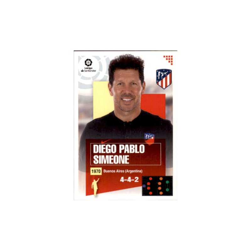 Cromo de Diego Pablo Simeone entrenador del equipo del Atlético Madrid de la serie básica con el número 1 de la colección oficial Liga Este 2020-21 de Panini.