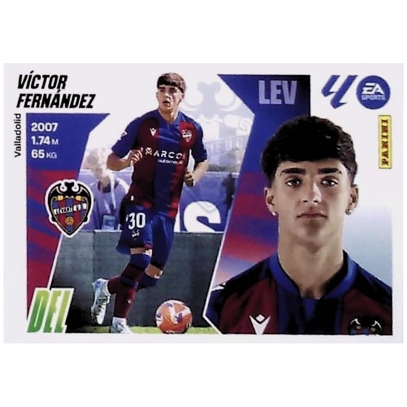 Cromo Sticker de Víctor Fernández con el número 19B del equipo del Levante de la serie básica de la 1º Edición de la colección oficial Liga Este 2025-26 de Panini.