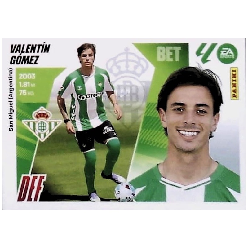 Cromo Sticker de Valentín Gómez de la serie Últimos Fichajes con el número 17 del equipo del Real Betis de la colección oficial Liga Este 2025-26 de Panini.