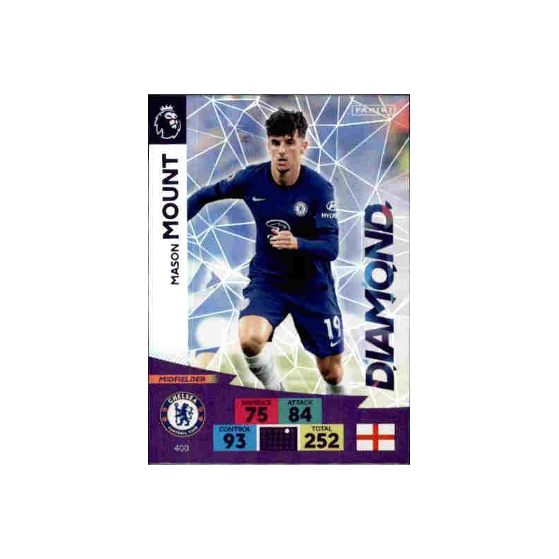 Trading Card de Mason Mount del equipo del Chelsea de la serie Diamond con el número 400 de la colección oficial Panini Megacracks 2020-21.