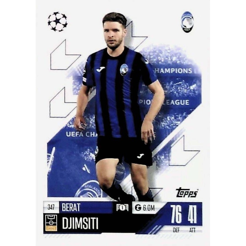 Trading Card de Berat Djimsiti del equipo del Atalanta BC con el número 347 de la serie básica de la colección oficial Topps Match Attax Uefa Competitions Club 2024-25.