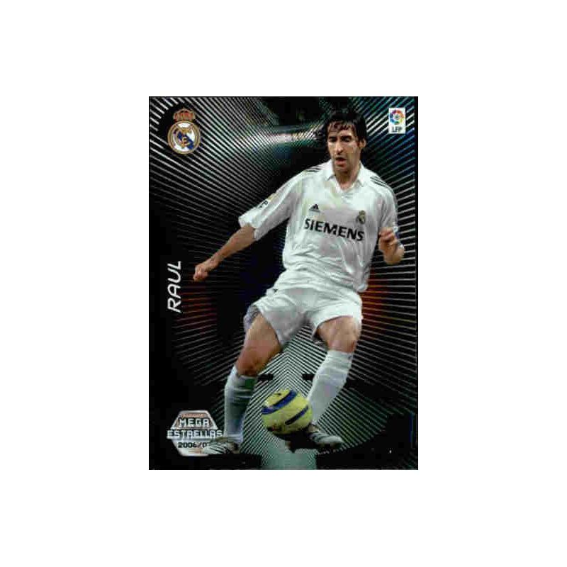 Trading Card de Raul del equipo del Real Madrid de la serie Mega Estrellas de la colección Panini Megacracks 2006-07.
