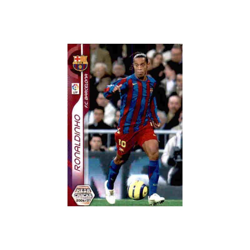 Trading Card de Ronaldinho del equipo del Barcelona de la Serie Básica de la colección Panini Megacracks 2006-07.