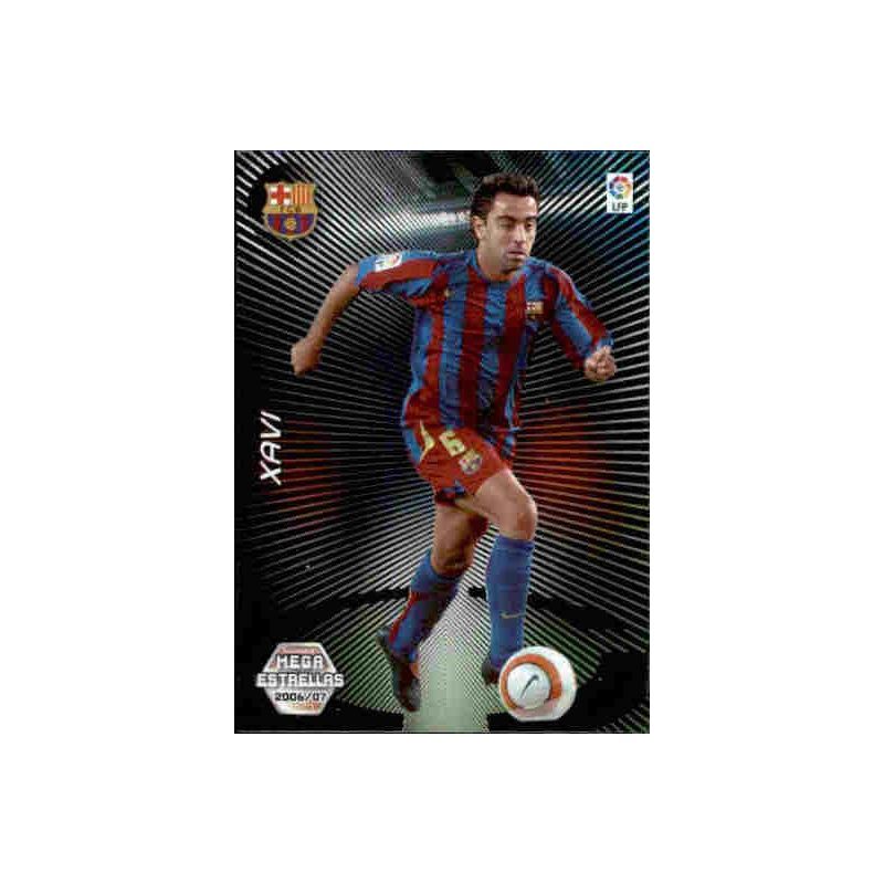 Trading Card de Xavi del equipo del Barcelona de la serie Mega Estrellas de la colección Panini Megacracks 2006-07.