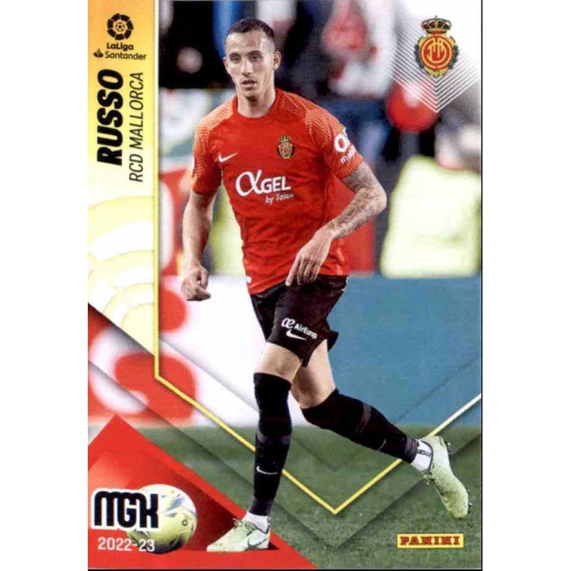 Trading Card de Russo que pertenece al equipo del Mallorca con el número 230 de la colección oficial Megacracks 2022-23 de Panini.