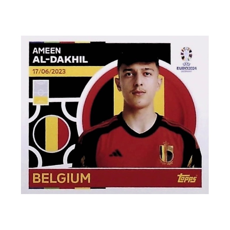 Cromo Sticker de Ameen Al-Dakhil de la selección de Bélgica con el número BEL 10 de la colección oficial Topps Uefa Euro 2024 Germany.