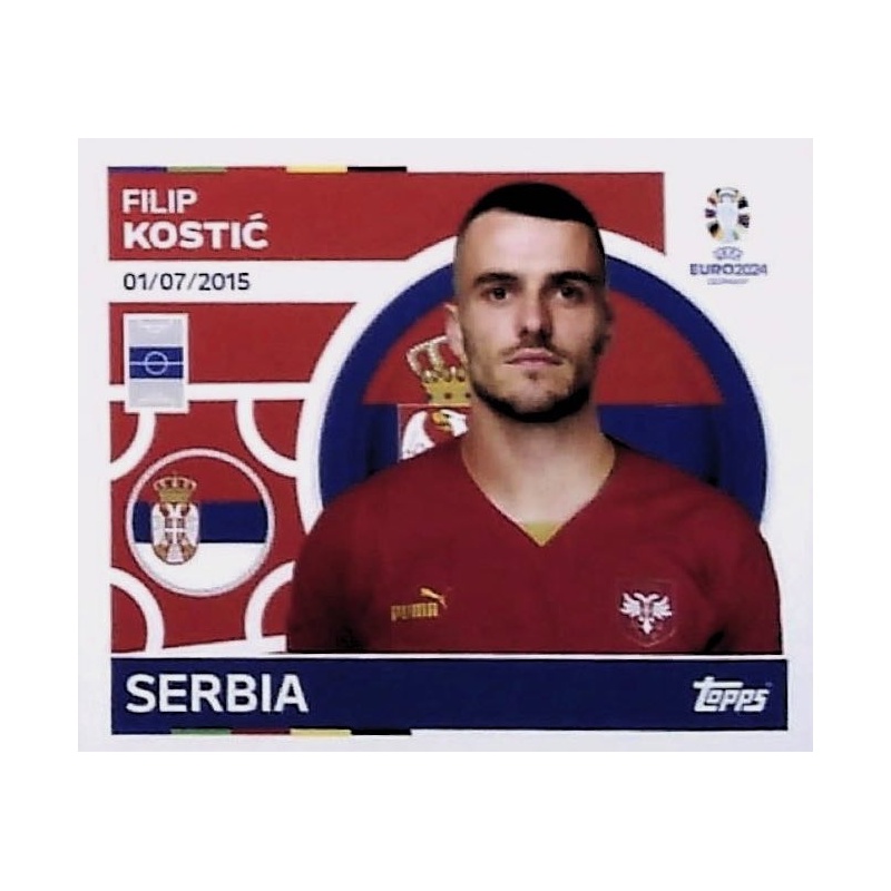 Cromo Sticker de Filip Kostić de la selección de Serbia con el número SRB 18 de la colección oficial Topps Uefa Euro 2024 Germany.