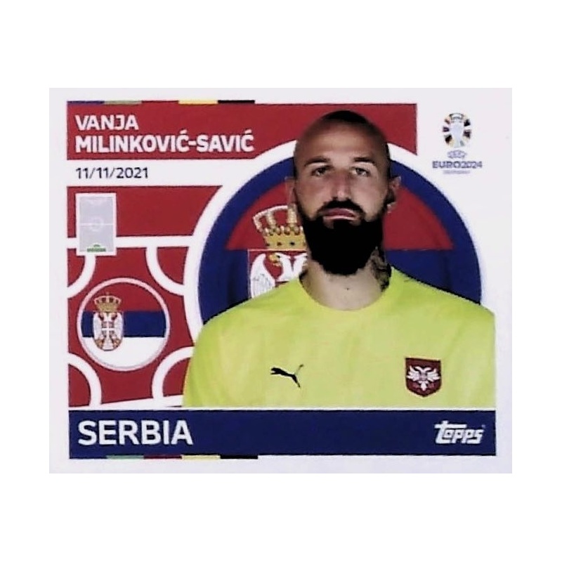 Cromo Sticker de Vanja Milinković-Savić de la selección de Serbia con el número SRB 4 de la colección oficial Topps Uefa Euro 2024 Germany.