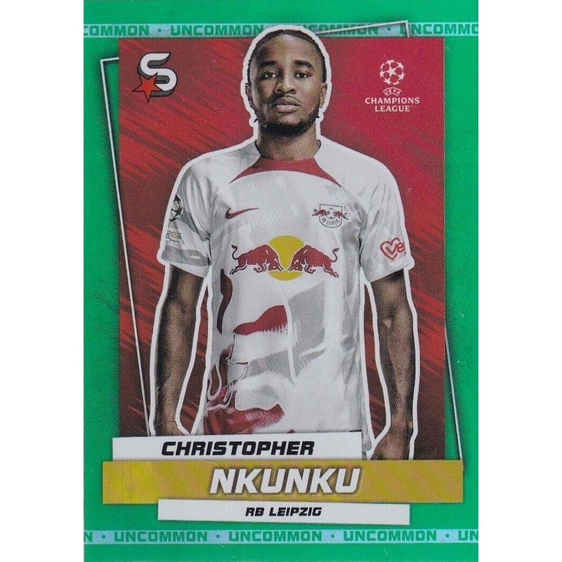 Trading Card de Christopher Nkunku del equipo del RB Leipzig con el número 120 de la serie Uncommon de la colección oficial Topps Uefa Champions League Superstars 2022-23.