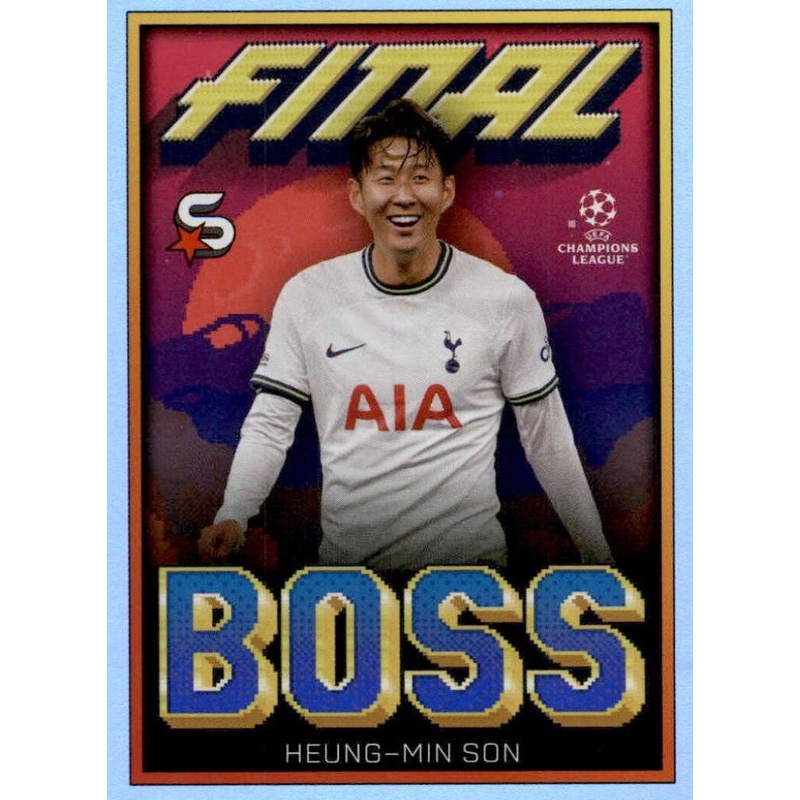 Trading Card de Heung-Min Son del equipo del Tottenham Hotspur con el número FB-HMS de la serie Final Boss de la colección oficial Topps Uefa Champions League Superstars 2022-23.