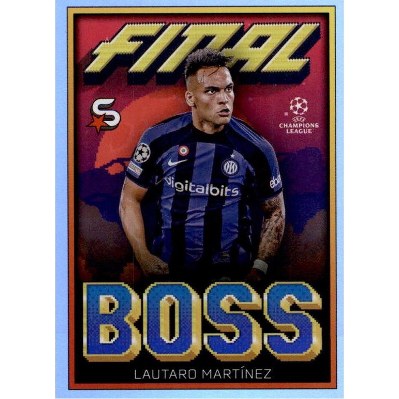 Trading Card de Lautaro Martínez del equipo del Inter Milan con el número FB-LAU de la serie Final Boss de la colección oficial Topps Uefa Champions League Superstars 2022-23.