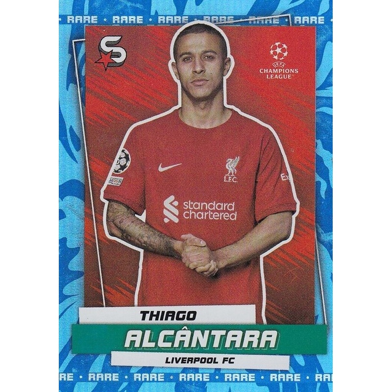Trading Card de Thiago Alcântara del equipo del Liverpool con el número 14 de la serie Rare de la colección oficial Topps Uefa Champions League Superstars 2022-23.