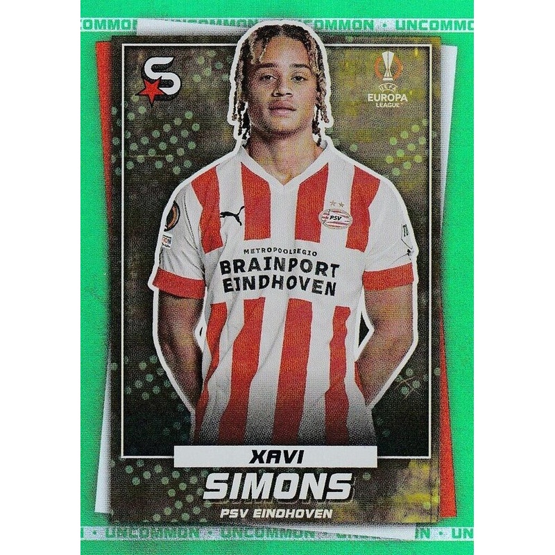 Trading Card de Xavi Simons del equipo del PSV Eindhoven con el número 155 de la serie Uncommon de la colección oficial Topps Uefa Champions League Superstars 2022-23.