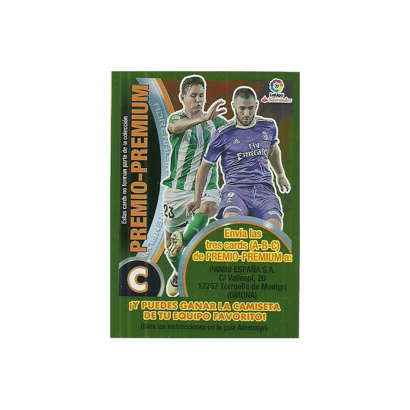 Trading Card of Premio Premium B from the Limited Edition series with the number of the official Panini Adrenalyn Xl 2016-17 Liga Santander collection.