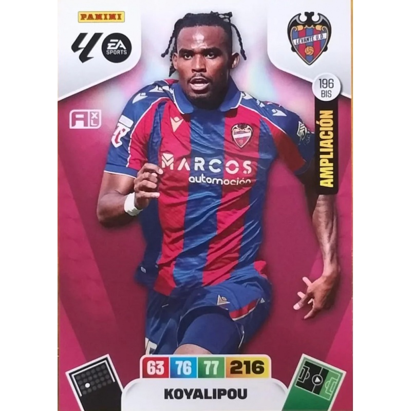 Trading Card of Koyalipou from the Levante team from Ampliación series with number 196 Bis from official collection Panini Adrenalyn XL Liga 2025-26.