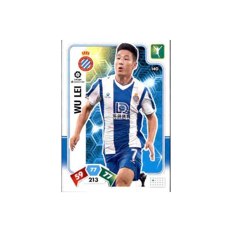 Soccer Trading Card number 140 Wu Lei of the team Espanyol which corresponds to the official collection Panini Adrenalyn XL League 2019-20 Santander .