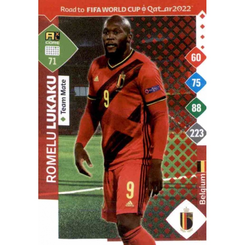 Trading Card of Romelu Lukaku from Belgium national team with number 71 from Panini Adrenalyn XL Road To Fifa World Cup Qatar 2022 Collection.