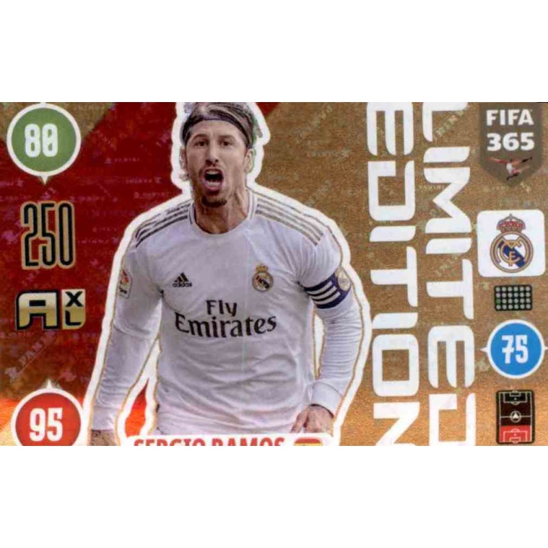 Trading Card of Sergio Ramos of the Real Madrid team from Limited Edition series the official Panini Fifa 365 Adrenalyn XL 2021 collection.