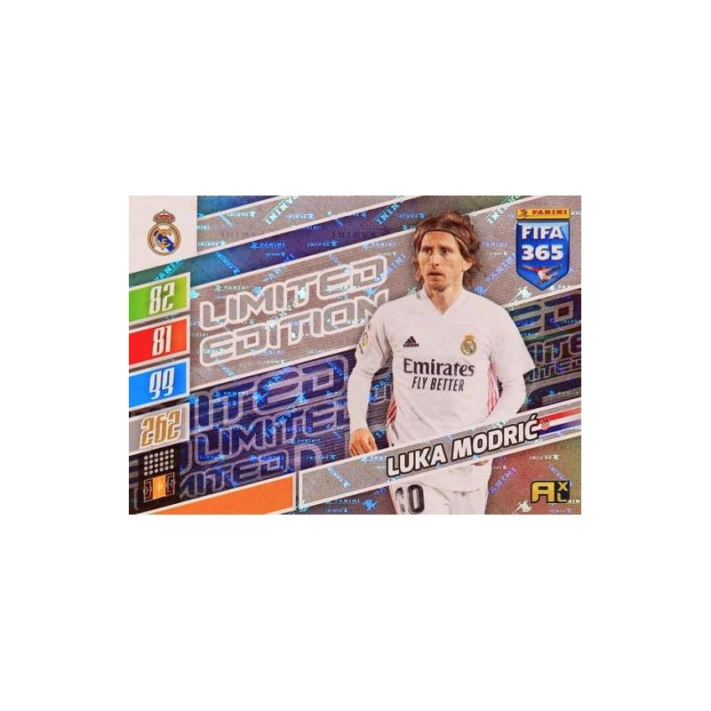 Trading Card of Luka Modric from Real Madrid team from Limited Edition series from Panini Adrenalyn XL FIFA 365 2022 collection.