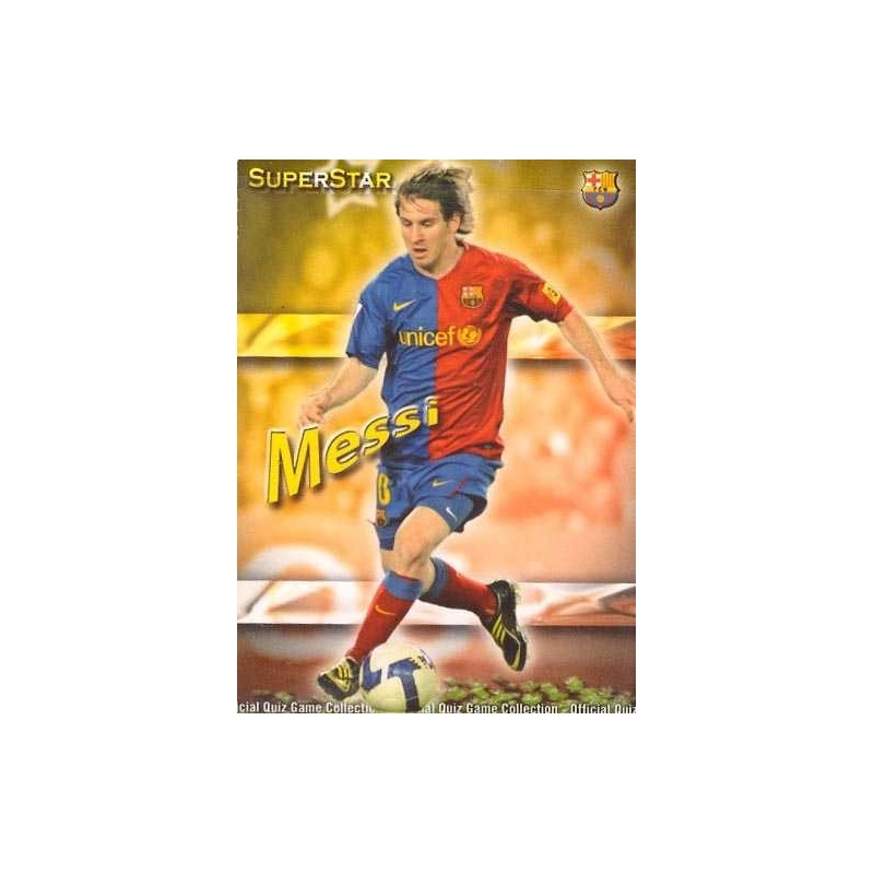Trading Card of Messi from Barcelona team from Superstar Mate series with number 27 from the Mundicromo Las Fichas de la Liga 2009-2010 Official Quiz Game Collection.