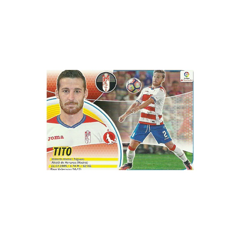 Sticker of Tito of the team of Granada with number 3 and with the official logo of the Liga Santander (with sponsor), corresponding to the collection Ediciones Este 2016-17 by Panini.