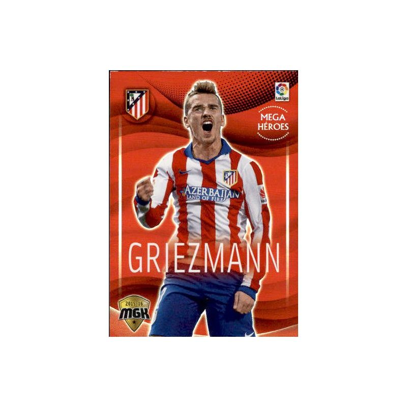 Trading Card of Griezmann Mega Héroes series of the Atlético Madrid team with number 53 from the official Panini Megacracks 2015-16 collection.