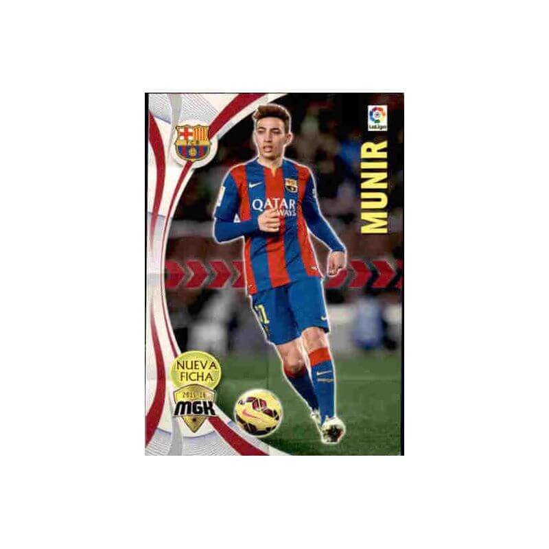 Trading Card of Munir Fichas Bis series of the Barcelona team with number 75 Bis from the official Panini Megacracks 2015-16 collection.