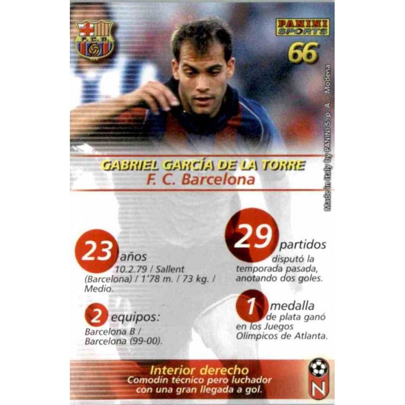 Trading Card of Gabri of the Barcelona team with number 66 from the official Panini Megafichas 2002-03 collection.
