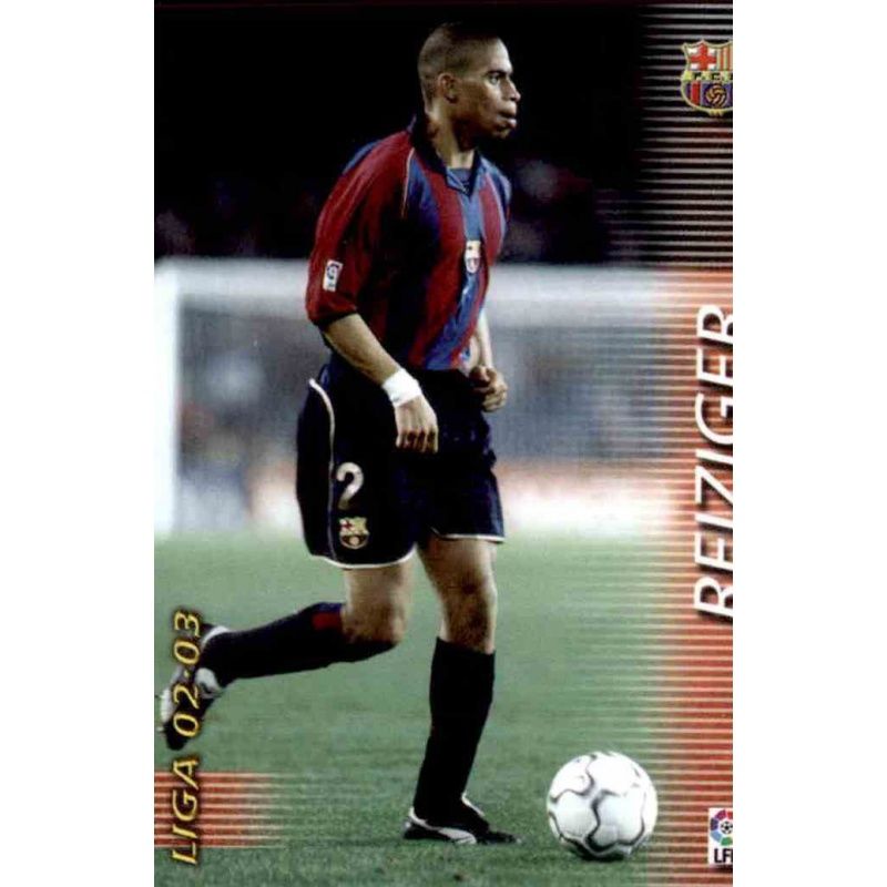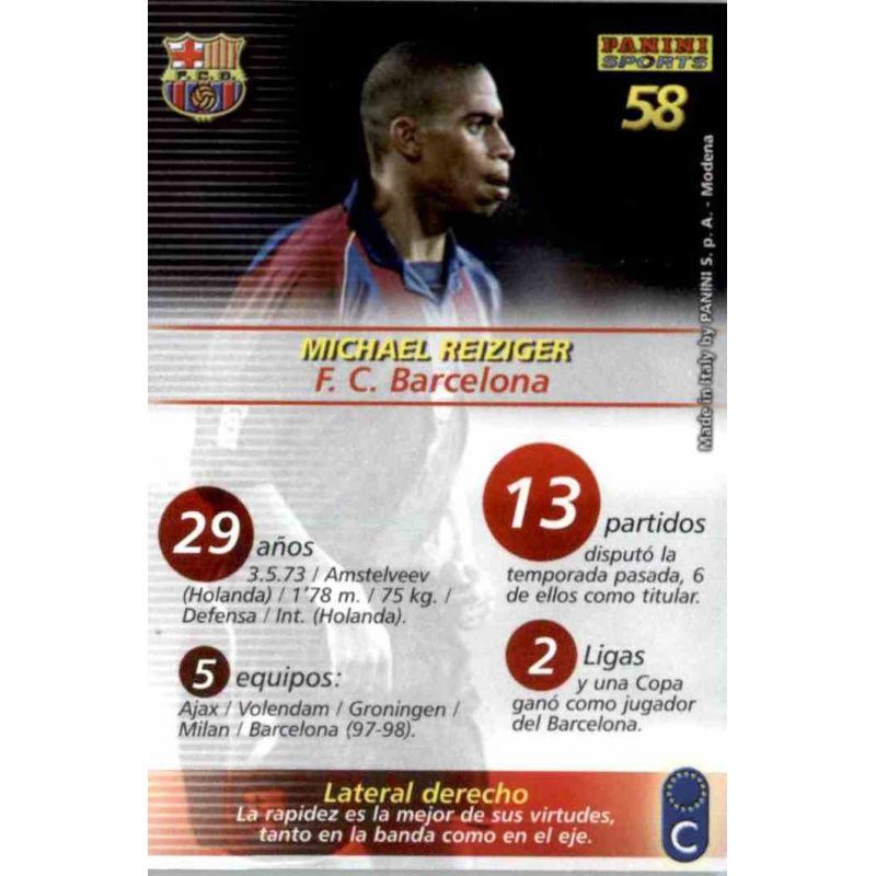 Trading Card of Reiziger of the Barcelona team with number 58 from the official Panini Megafichas 2002-03 collection.